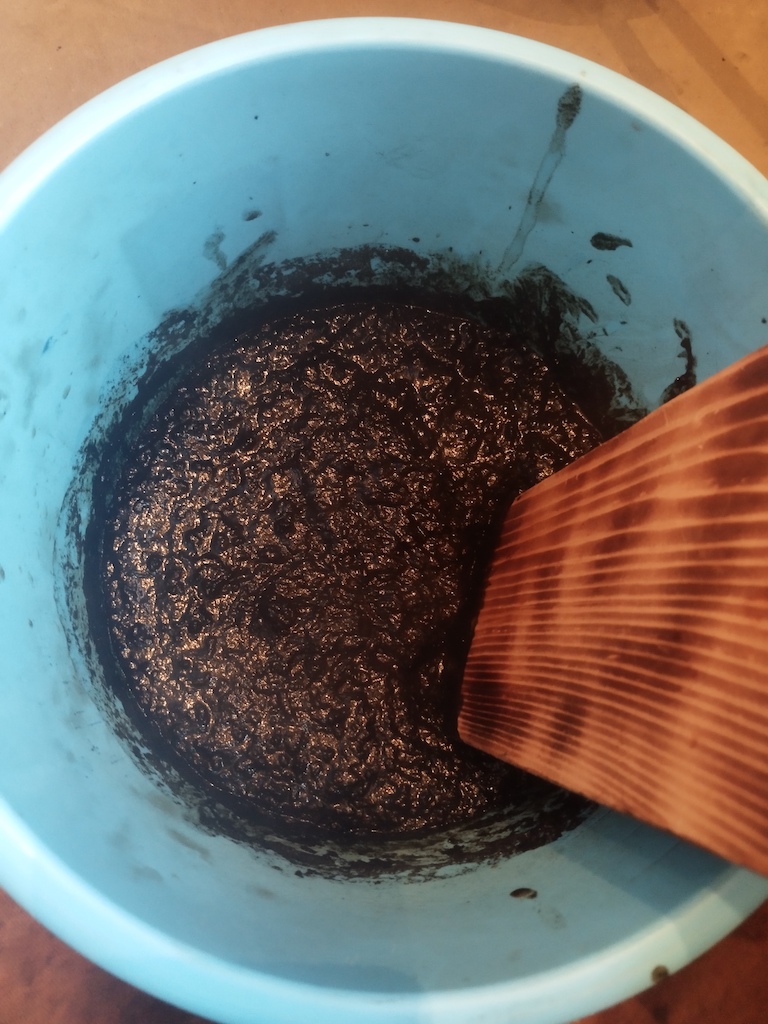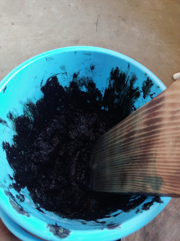 ②発酵させた藍と灰汁を3時間以上練り合わせます。