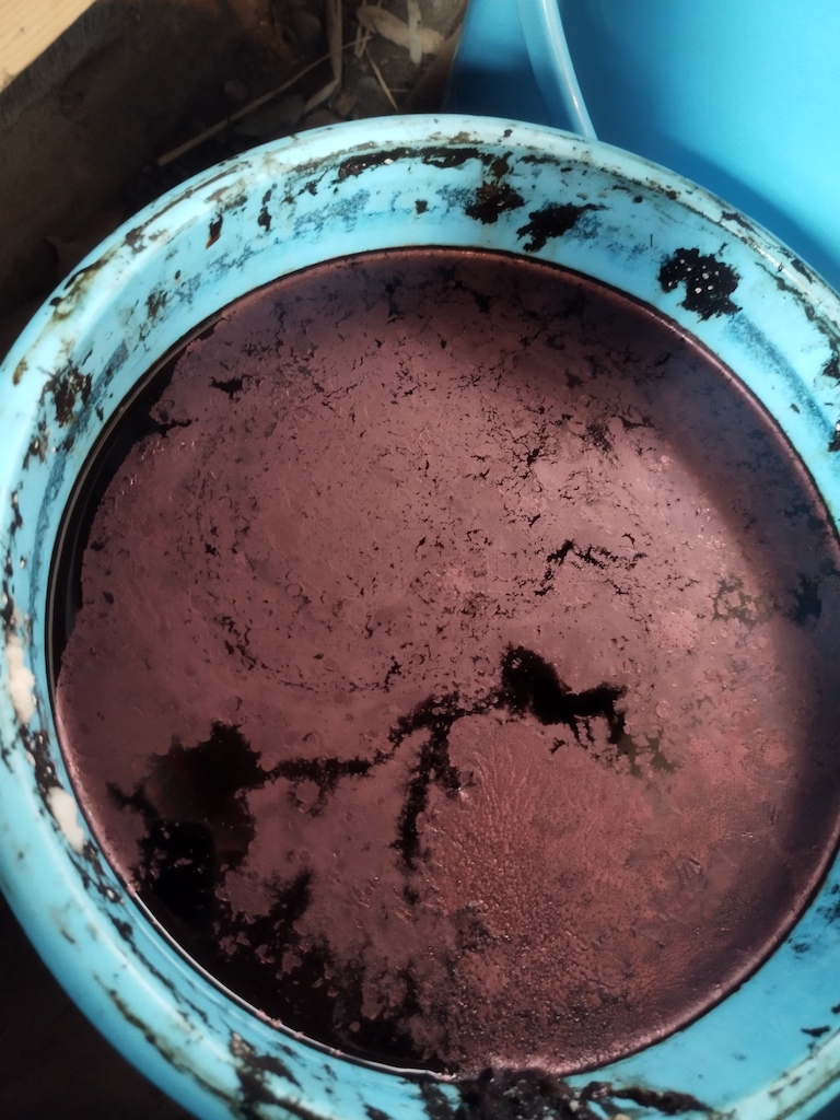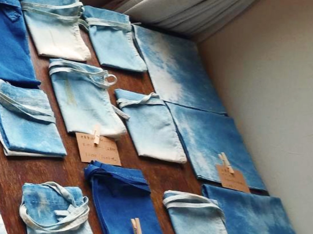④新月から作り始めて満月に発酵する自然任せの正藍染めが完成します。