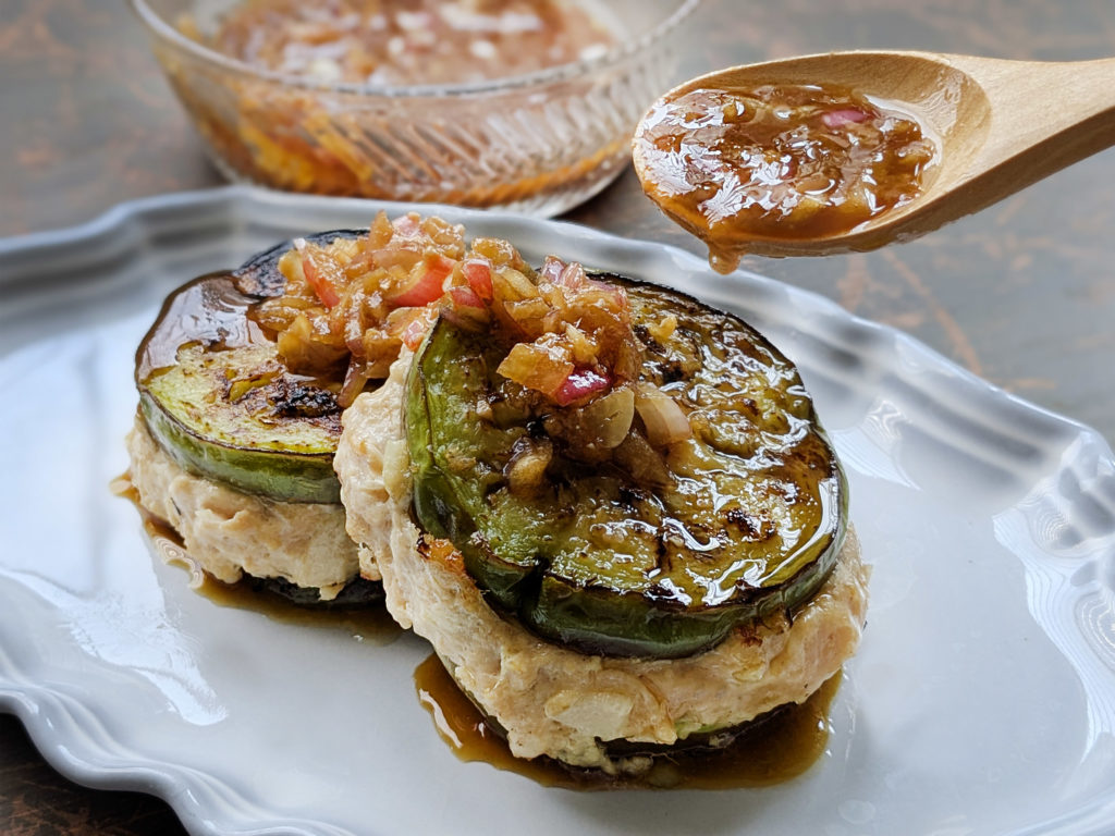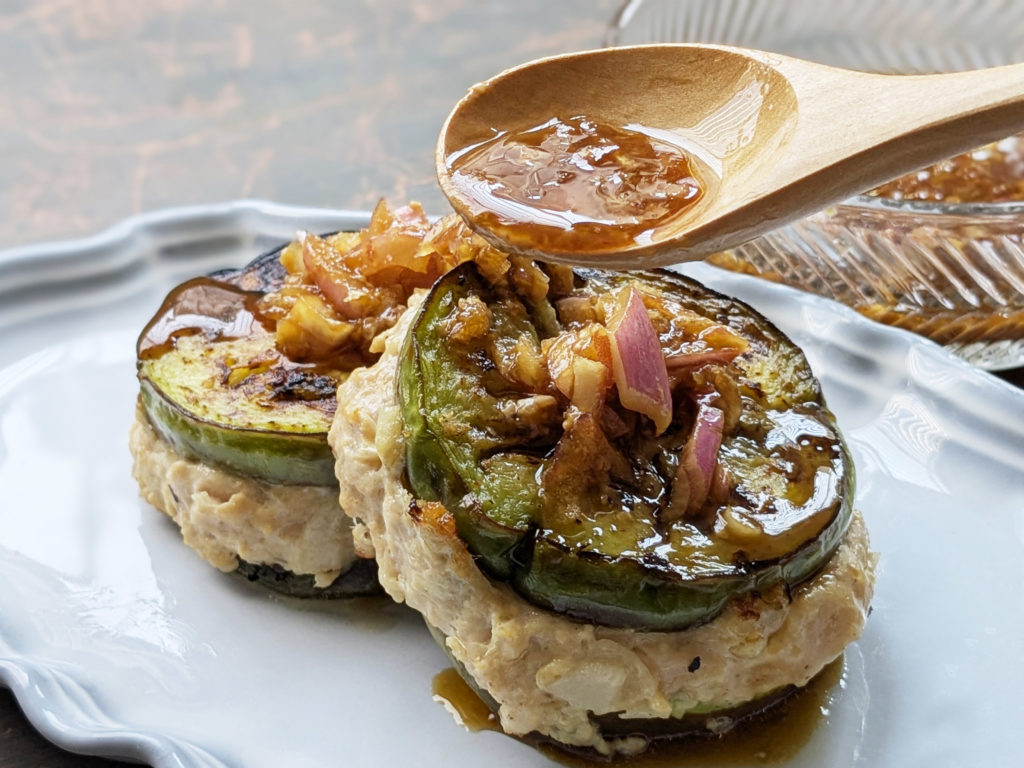 じっくり蒸し焼きにすることで、青なすがとろけるような柔らかい食感に仕上がります。