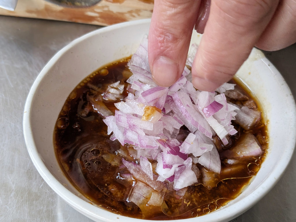 赤玉ねぎ ………………… 1/2個(みじん切り)