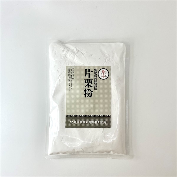 北海道産の無肥料・無農薬の片栗粉です。 一切の肥料をほどこさない、化学農薬にもたよらない栽培をしている北海道農家さんの馬鈴薯を原料に使用しています。