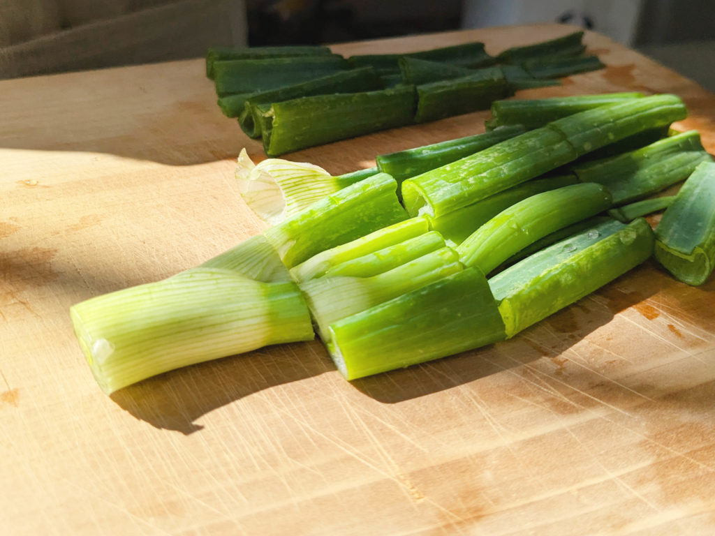 白~薄い緑の部分と葉に切り分ける。