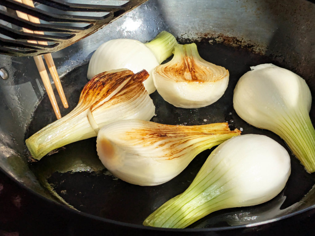 ポイント:切り口をしっかり焼くと甘みが引き出される。葉は入れすぎない、火を入れすぎない。