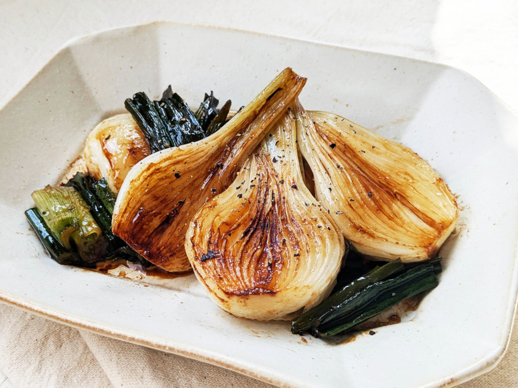 葉たまねぎをじっくり焼くだけのシンプルな一品。
