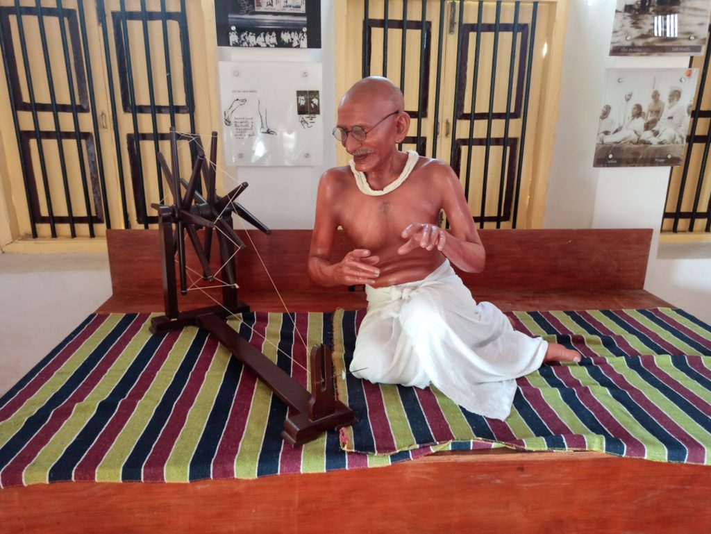 かつて高い繊維技術を誇ったインドの手工業は、イギリスの紡績工場で機械化され、世界中へ安価な綿布として輸出されたことでインドは壊滅的打撃を受けました。イギリスの植民地であったインドは、綿花の生産地・市場・搾取対象として再編されてしまったということです。そして、イギリスの支配によって壊滅したインドの紡績・織布産業を、村単位の手工業として復活させることで、労働の尊厳、地域経済の再構築、そして貧困層の救済の目的がそこにあったのです。