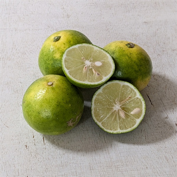 皮はライムに似た独特の香りがあり、ライムよりは皮が柔らかく手でも搾りやすいです。また、果汁は甘みのないグレープフルーツのようなジューシーさと柔らかな酸味が特徴で、少し搾っただけでも果汁がたっぷり溢れます。炭酸水やお酒に絞ったり、ドレッシングやポン酢づくりなどにお使いください。