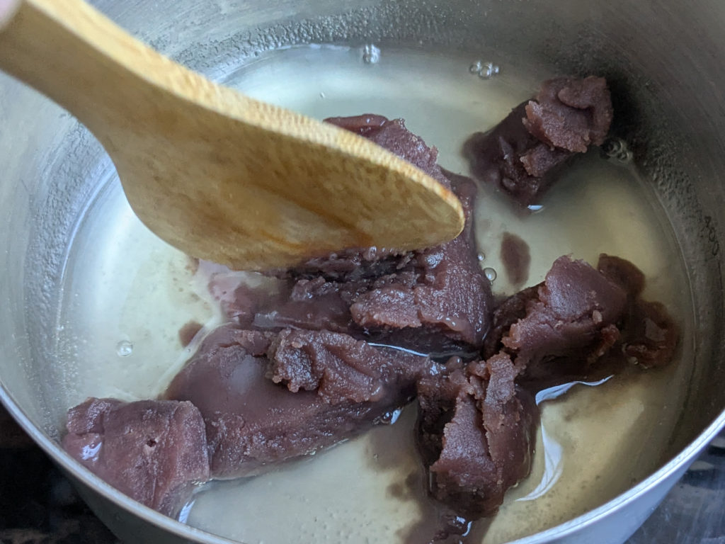 ②砂糖とこし餡を加え溶かす。
