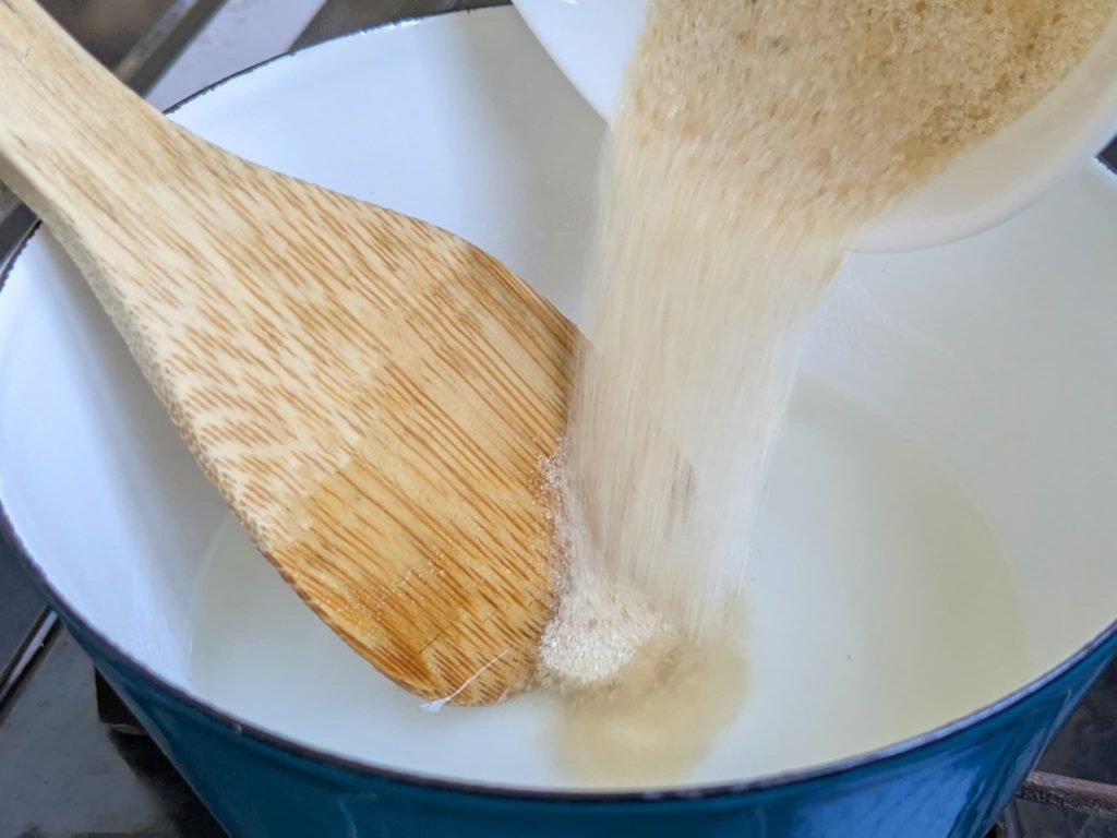 ③砂糖を加え溶かし、火をとめて70℃くらいまで冷ます。