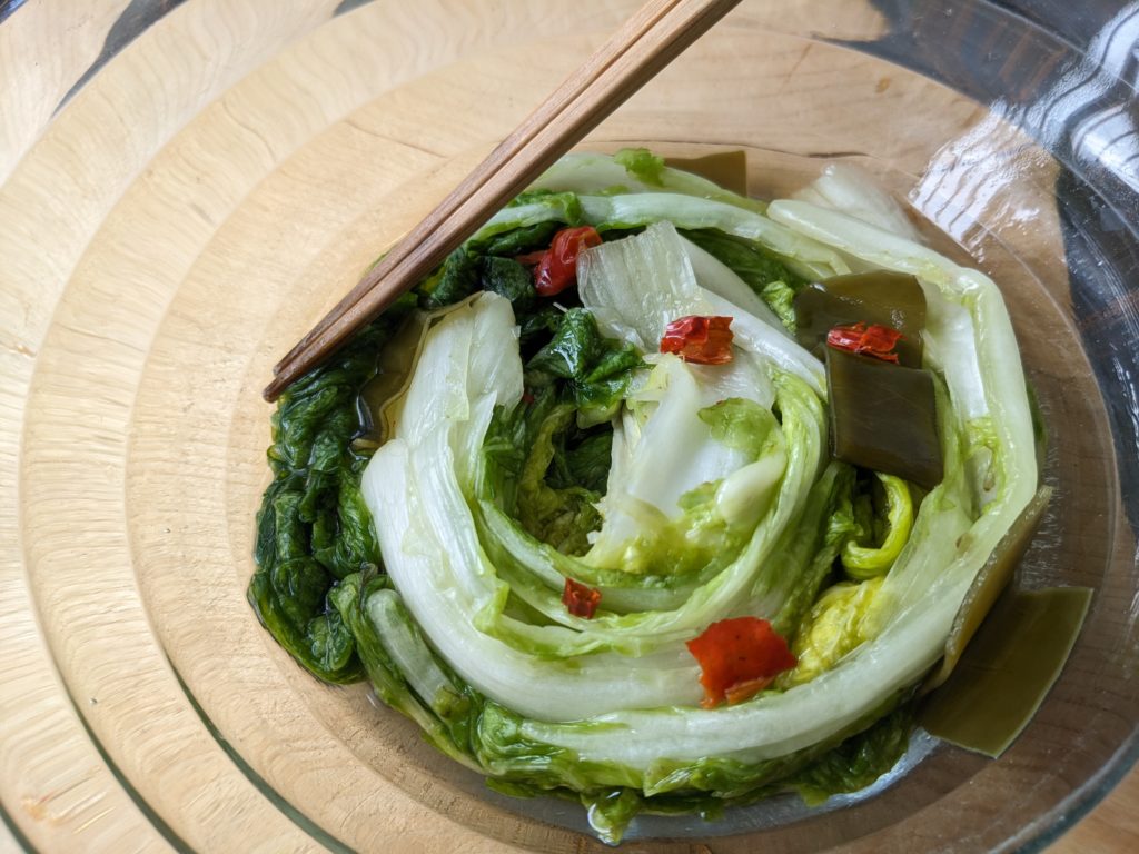※ 塩の代わりに、白醤油を大さじ2、昆布、唐辛子でもほのかに醤油の風味もあり、美味しいです。